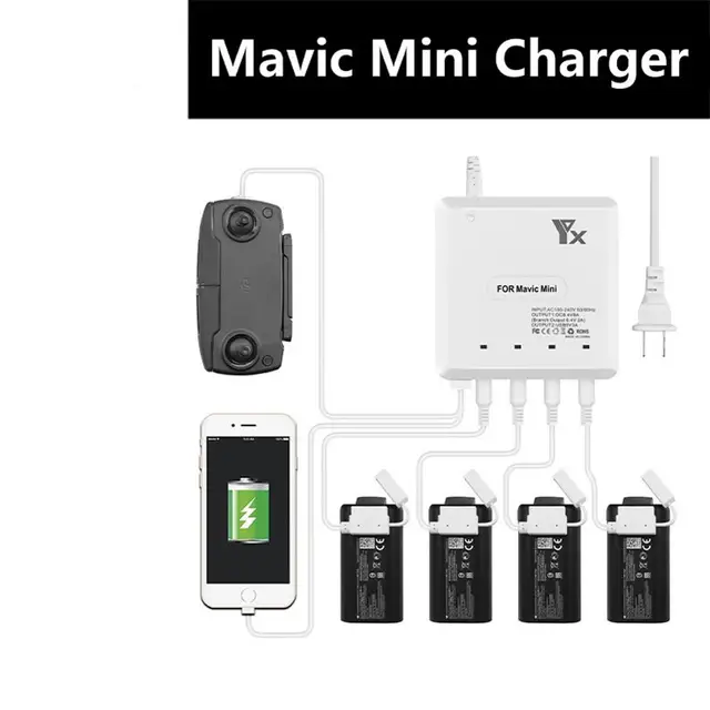Specification:Adapted Product:mavic mini batteryInput:AC100-240V 50 / 60HZOutput 1 (battery):DC 8.4V 8A (branch output: 8.4V 2A)Output 2 (USB):USB 5V 3ACharging Time:80 minutes with 4 batteries charged at the same timeProduct Net Weight:417g US plug, 415.8g EU plug, 472g UK plug, 440.5g AU plugPackage Weight:465.2g US plug, 462.8g EU plug, 523g UK plug, 491.5g AU plugPacking Size:15.5 * 15.2 * 3.8cm (US and EU) 19 * 12 * 4.5cm (UK and AU)