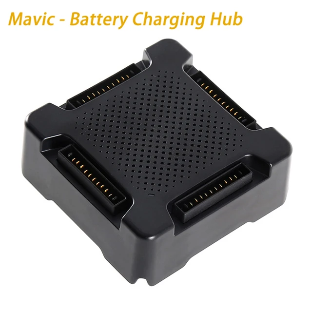 The Mavic Battery Charging Hub is designed for use with the Mavic Intelligent Flight Battery. When used with the Mavic Battery Charger, it can charge up to four Intelligent Flight Batteries. The Intelligent Flight Batteries will be charged in sequence according to their power levels, from high to low.